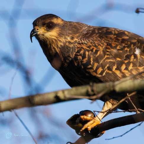 As I watched these raptors hunt for the Apple Snails all morning, it is hard to ignore their strongly curved bill that fits inside the snail shells to pull out the juicy prey inside. They often tend to start eating while returning to their perch. The one on the left below is a female while the male is on the right.